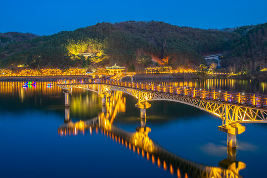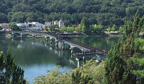 El puente de madera peatonal más largo de Corea, famoso por su diseño tradicional y las leyendas románticas que lo rodean.